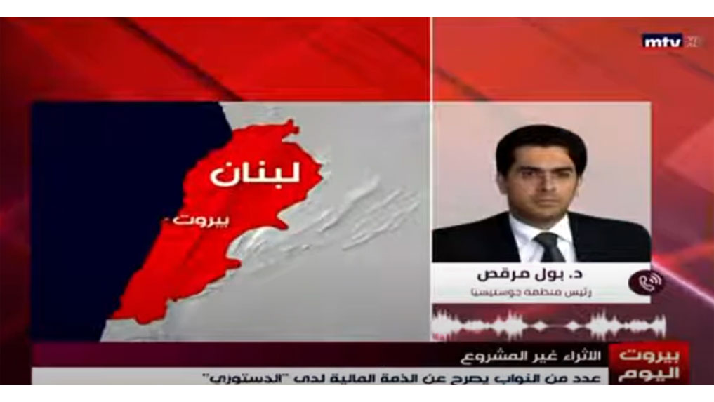 Uncategorized Eng English المحامي د مرقص MTV التصريح عن الذمم المالية تبقى شكلية ما لم تقم اجراءات مكافحة الفسا Share FacebookTwitterPinterestWhatsApp November 10, 2021 SubscribeI want inI've read and accept the Privacy Policy. Related articles News Press Dr. Paul Morcos Honors the Legacy of Antoine Karbage in Special Tele Liban Tribute Under the title "The Greats Never Leave", Dr. Paul... Read more News Press Banking Challenges and Developments in Lebanon and the Middle East Amid the profound economic transformations taking place in Lebanon... Read more News Press قانونياً وأمنياً.. هل سيتمكن لبنان من إجراء الانتخابات البلدية في موعدها؟ 01-02-2025 تجرى الانتخابات البلدية في لبنان بشكل دوري كل ست سنوات، حيث... Read more News Press سررت بتلبية دعوة أمين السر العام في الحزب التقدمي... Read more News Press تأجير الرحم في لبنان: اتفاقيات في السرّ … وطلب على العاملات الأجنبيات 31-01-2025 نجحت العاملة في وضع المولود، وبعد انتهاء الاتفاق بين... Read more Previous articleد بول مرقص لبنان بغياب حكومةNext articleالسياسة اليوم مع د بول مرقص رئيس منظمة جوستيسيا الحقوقية